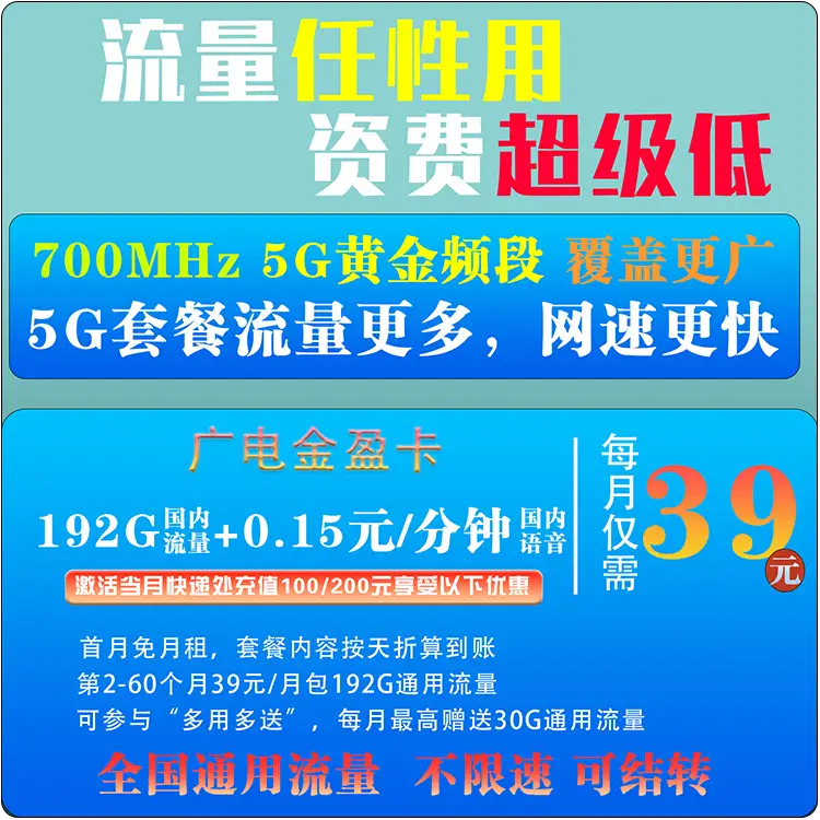 广电超大流量卡,免费领取,包邮到家!
